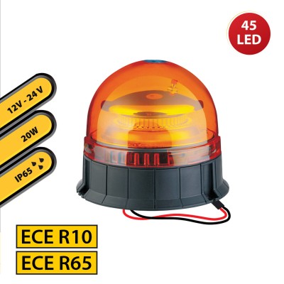 Stak LED švyturys yra efektyvus ir patvarus sprendimas signalizacijai žemės ūkio, pramonės aplinkoje bei avariniuose automobiliuose, sukurtas užtikrinti aukštą matomumą bet kokiomis oro sąlygomis. Įrengtas su 45 didelio intensyvumo LED, jis suteikia 360° šviesos sklaidą, maksimaliai pagerindamas matomumą iš bet kurio kampo – tai itin svarbu situacijose, kur aiški signalizacija yra būtina saugumui. Tvirtas ABS plastiko korpusas užtikrina ilgaamžiškumą, o skaidrus polikarbonato difuzorius apsaugo optinę sistemą ir optimizuoja šviesos paskirstymą. Su IP65 apsaugos lygiu švyturys atsparus lietui, sniegui ar rūkui, todėl patikimai veikia lauko sąlygomis. 20 W galia ir 12/24 V elektros suderinamumas leidžia lengvai integruoti į įvairius automobilius ir techniką. E-Mark (ECE R10 / R65) sertifikatas patvirtina, kad gaminys atitinka Europos elektromagnetinio suderinamumo ir signalizacijos reikalavimus automobilių sektoriuje. Švyturys veikia iki 30 000 valandų ir turi 2 mirksėjimo režimus, kad prisitaikytų prie skirtingų įspėjimo poreikių. Montavimas greitas ir saugus – tvirtinamas viršuje trimis varžtais, o dviejų laidų jungtis užtikrina efektyvų ir stabilų įrengimą. Šis švyturys sujungia patvarumą, efektyvumą ir atitiktį standartams, užtikrindamas patikimą ir aukštos kokybės matomumą reikliose profesinėse aplinkose.