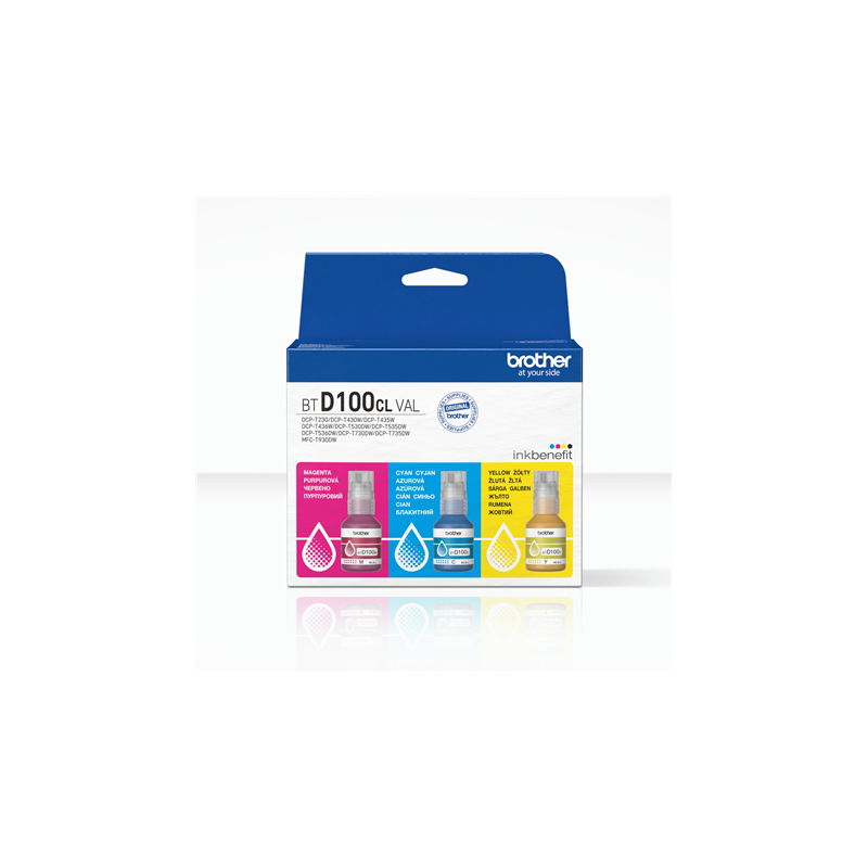 Brother BTD100CLVAL | Multipack Ink Bottles | Magenta, Cyan, Yellow