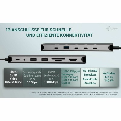 USB šakotuvas i-Tec C31NANOTRIPLEDOCKPD Pilka