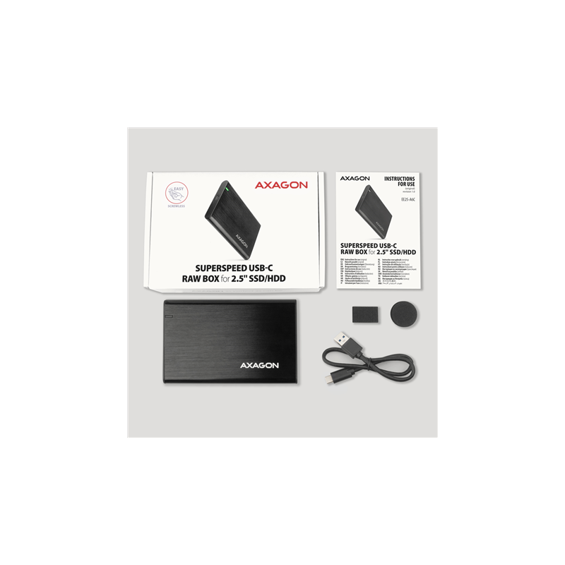 AXAGON Screwless aluminum USB 3.2 Gen 1 - SATA 6G external box for 2.5" SSD/HDD | EE25-A6C