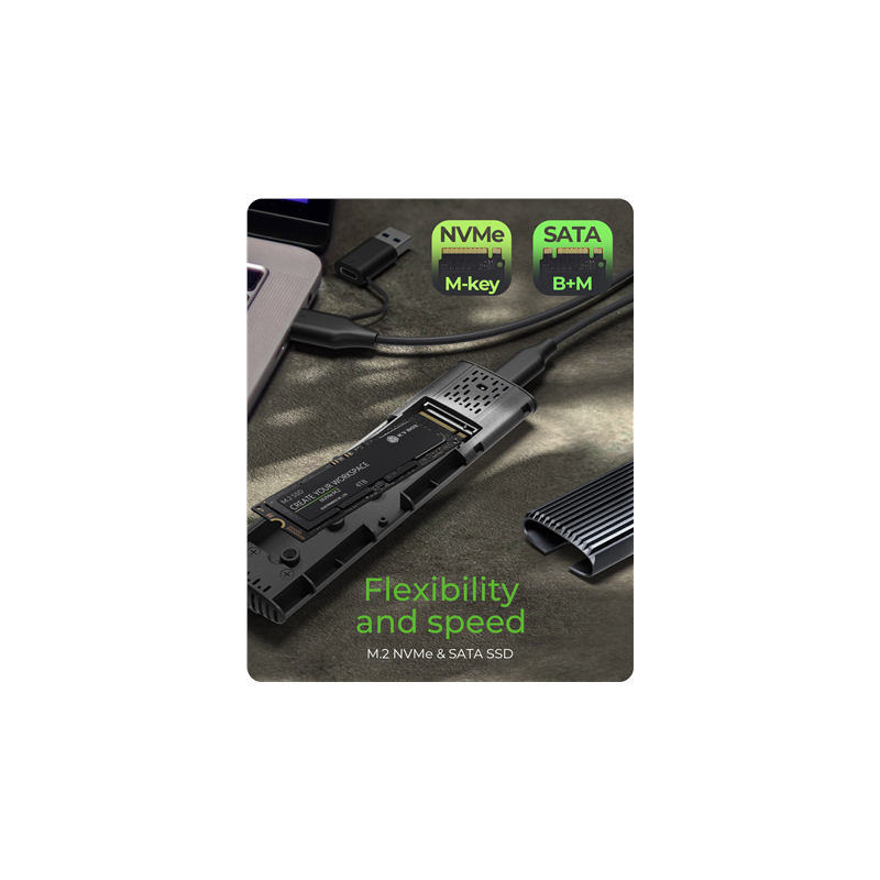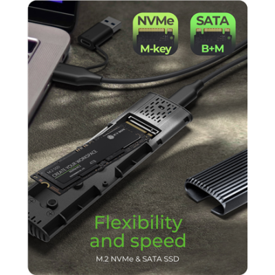 - Gamintojo prekės serija: M.2 NVMe and SATA SSD Enclosure via USB Type-C