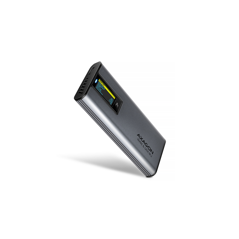 AXAGON External USB-C 10Gbps metal box with info display for M.2 NVMe and SATA SSD | EEM2-SD2
