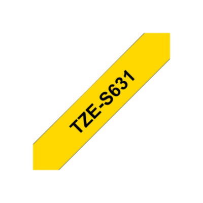 Brother | TZe-S631 Strong Adhesive Laminated Tape | Black on Yellow | TZe | 8 m | 1.2 cm