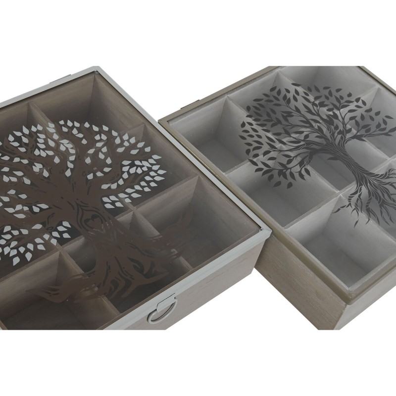 Dėžutė arbatai Home ESPRIT Ruda Rusvai gelsva Metalinis Stiklas Medžio MDF 24 x 24 x 6,5 cm (2 vnt.) už geriausią kainą.