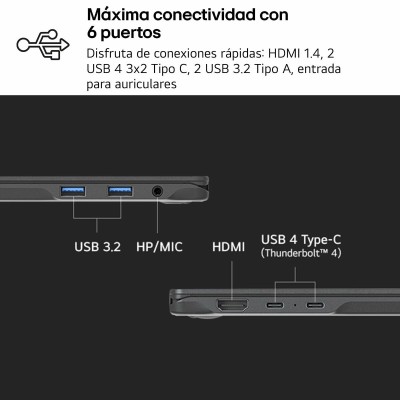 LG 14Z90RU-G.AA55B nešiojamas kompiuteris sukurtas derinti nešiojamumą, našumą ir patvarumą, tinkamas profesionalams ir studentams, kuriems svarbi mobilumas be galios praradimo. Jo 14 colių ekranas su WUXGA raiška (1920 x 1200) ir IPS technologija suteikia ryškų vaizdą su gyvomis spalvomis dėl 99 % DCI-P3 spalvų aprėpties ir 16:10 formato, leidžiančio matyti daugiau turinio su mažiau slinkimo, gerinant darbo ir pramogų patirtį. Įmontuotas 13-os kartos Intel Core i5 procesorius (modelis 1334U) su 12 MB talpine ir integruota Intel Iris Xe grafika užtikrina efektyvų našumą sudėtingoms užduotims, įskaitant vaizdo redagavimą ir multitaskingą. Turi 16 GB LPDDR5 RAM, užtikrinančią greitą duomenų apdorojimą ir sklandų veikimą, bei 512 GB SSD, suteikiantį pakankamai vietos ir greitą prieigą prie failų bei programų. Šis nešiojamas pasižymi lengvu ir tvirtu dizainu, pagamintu iš medžiagų, išlaikiusių septynių lygių karinius atsparumo testus, todėl yra patvarus ir lengvai nešiojamas kasdien. Baterija su 72 Wh talpa leidžia naudotis iki 24,5 val., užtikrinant visos dienos veikimą be įkrovimo. Klaviatūra yra QWERTY ispanų kalba, pritaikyta patogiam ir tiksliai rašymui. Ryšio galimybėse yra du Thunderbolt™ 4 prievadai greitam duomenų perdavimui ir išplėtimui, taip pat belaidis Wi-Fi ir integruota vaizdo kamera vaizdo skambučiams. Garso kokybę pagerina Dolby Atmos su smart amp technologija, užtikrinanti erdvinį garsą tiek multimedijai, tiek aiškioms vaizdo konferencijoms. Taip pat įdiegta pažangi dėmesio jutiklio sistema, atpažįstanti veidą, akis ir žvilgsnį, gerinanti saugumą ir prieinamumą. Veikia su Windows 11 Home 64 bitų operacine sistema, suteikiančia prieigą prie naujausių funkcijų ir įrankių. Apibendrinant, LG 14Z90RU-G.AA55B yra pažangus, patvarus ir efektyvus nešiojamas kompiuteris, skirtas tiems, kurie ieško universalumo, kompaktiškumo ir modernios technologijos kasdieniam darbui ir pramogoms.