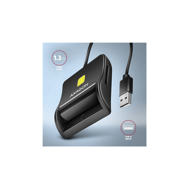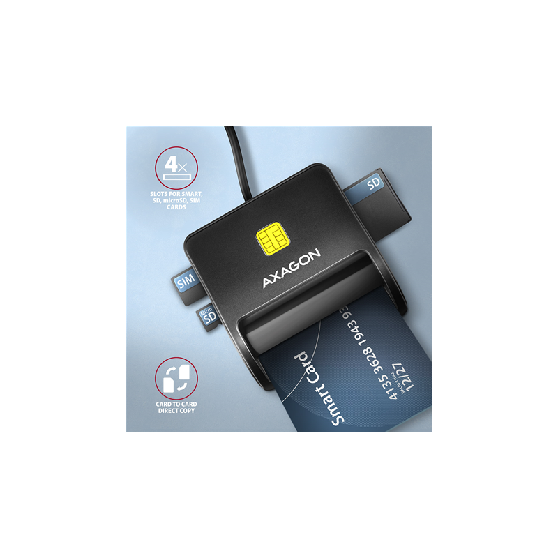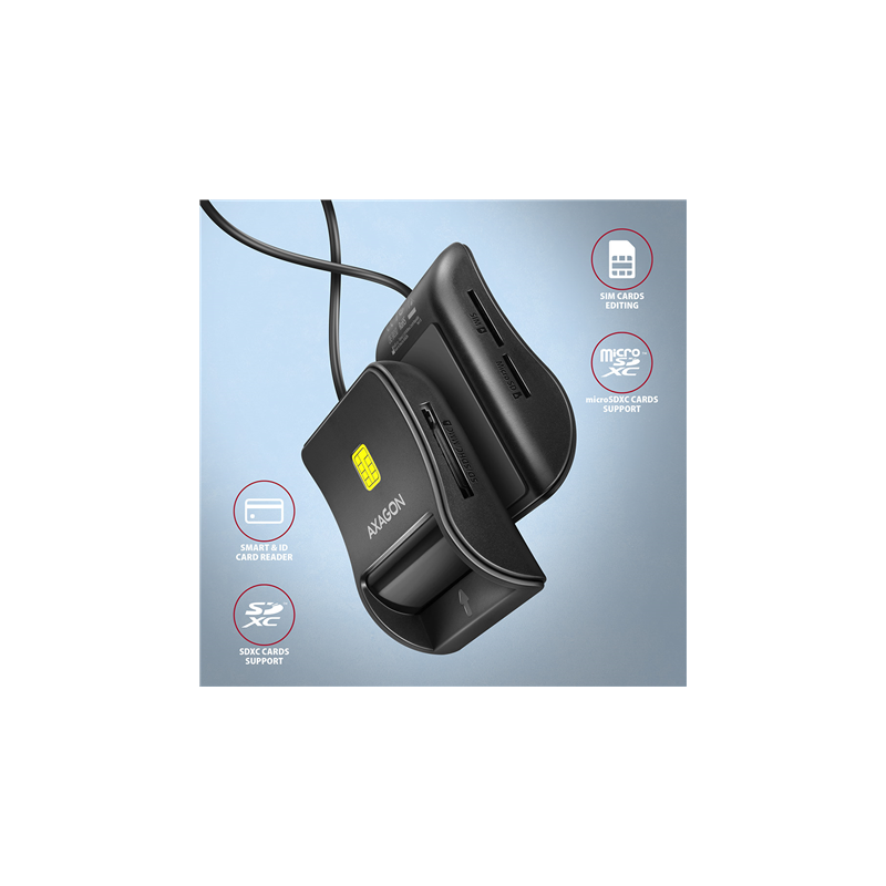 AXAGON Compact desktop USB contact Smart/ID & SD/microSD/SIM card reader with long, USB-A cable | CRE-SM3SD