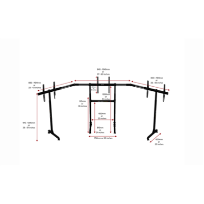 Next Level Racing | Floor stand | Free Standing Triple Monitor stand | 3 x 32- 65 " | Maximum weight (capacity) 70 kg | Black