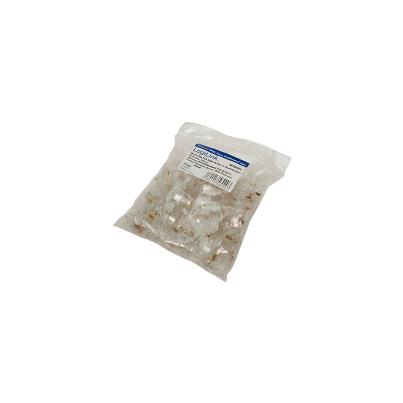 MP0002 | CAT5e Modular PlugSuitable for 8P8C Round CablePlug unshieldedGold-plated contacts | Transparent