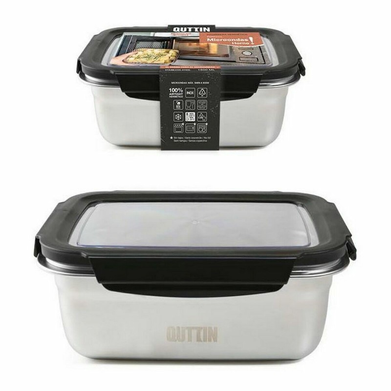 Hermetiška priešpiečių dėžutė Quttin Stačiakampis Nerūdijantis plienas Sidabras Plienas 1,8 L (12 vnt.)