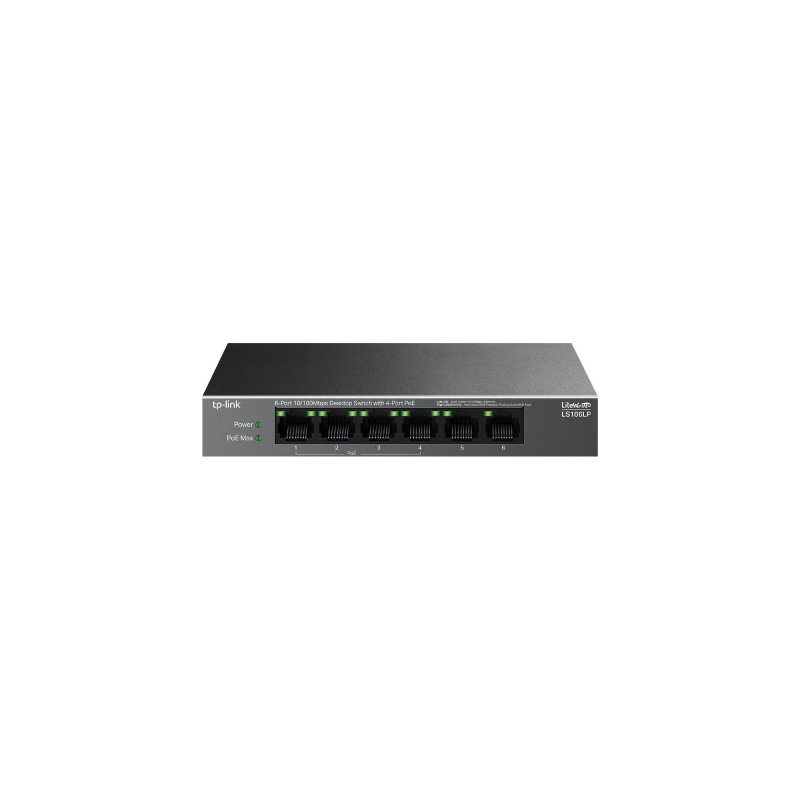 TP-LINK | 6-Port 10/100 Mbps Desktop Switch with 4-Port PoE | LS106LP | Unmanaged | Desktop