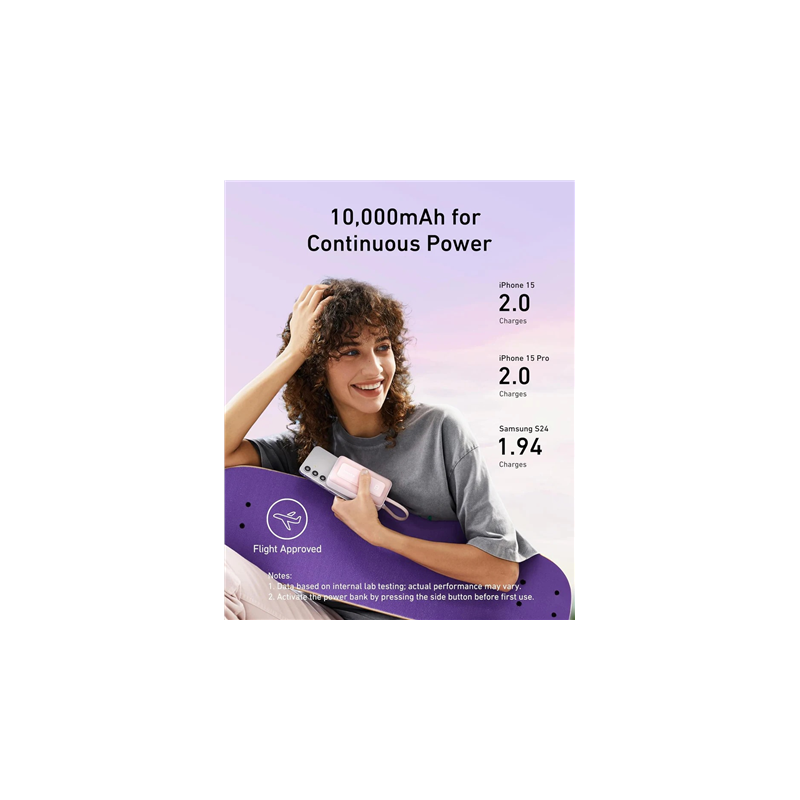 Anker Power Bank, Built-In USB-C Cable, 30W | A1688H21 | 10000 mAh | White