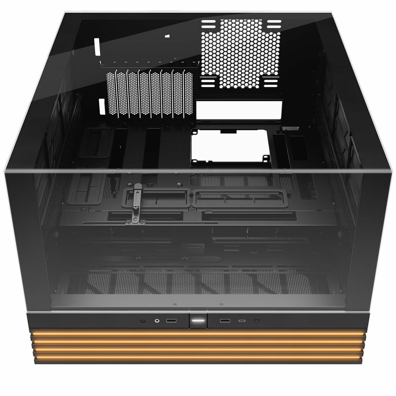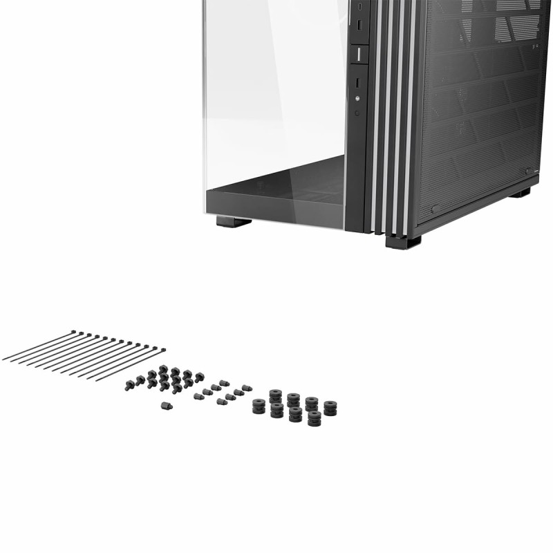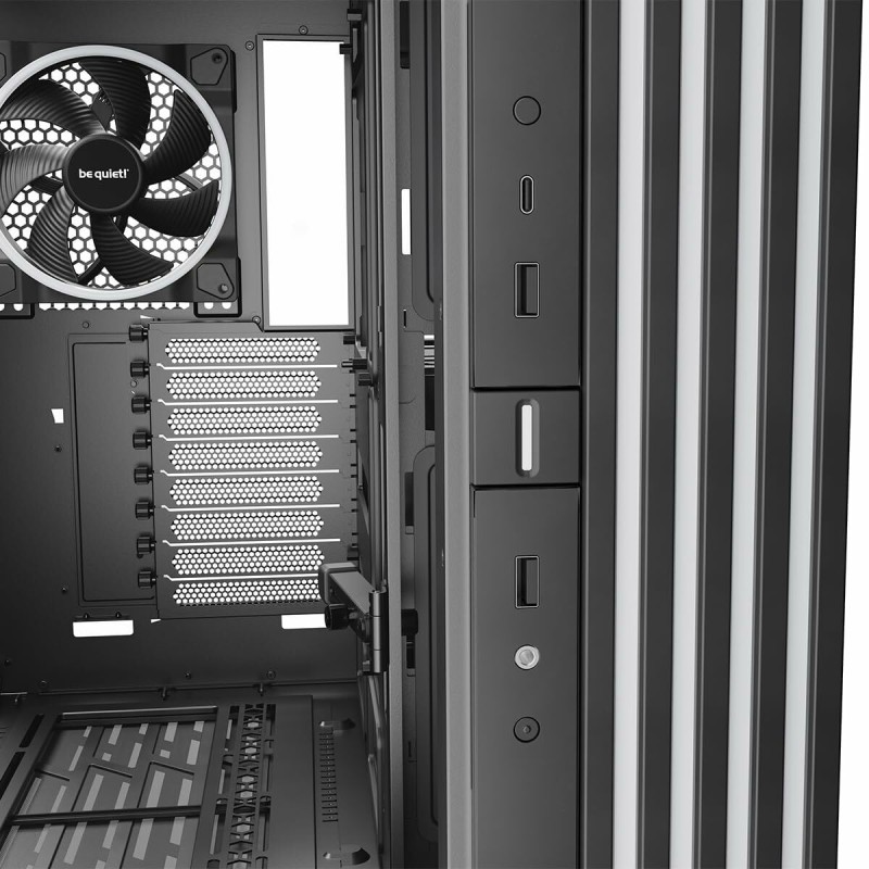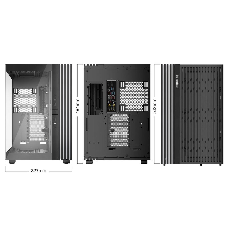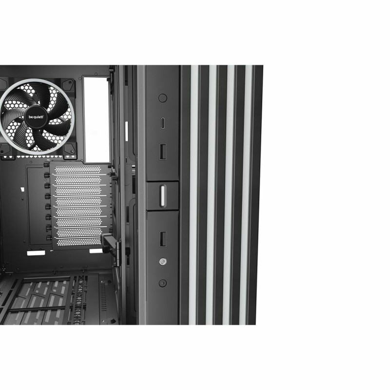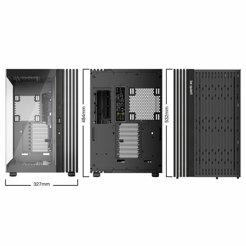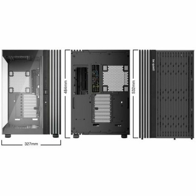 Be Quiet! BGW69 pusatornės korpusas yra aukštos kokybės ATX tipo kompiuterio korpusas, taip pat palaikantis mATX ir suderinamas su EATX formatais, suteikiantis didelį universalumą vartotojams, norintiems surinkti galingas arba įvairių dydžių pagrindinių plokščių sistemas. Išsiskiria plieno konstrukcija, užtikrinančia tvirtumą ir ilgaamžiškumą, papildyta grūdinto stiklo panelėmis, leidžiančiomis aiškiai matyti vidinę įrangą – tai idealu žaidimų ir individualių sistemų entuziastams. Modelis pasižymi santūriu juodos spalvos dizainu su spalvotais akcentais, derinančiais eleganciją ir pritaikomą apšvietimą, kuris pagerina įrenginio išvaizdą. BGW69 korpusas yra paruoštas efektyviai integruoti pažangias skysčio aušinimo sistemas, dėka lanksčios konfigūracijos, palengvinančios aušinimo rinkinių montavimą ir padedančios palaikyti stabilias darbo temperatūras net esant didelėms apkrovoms. Pusatornės formato dėka yra pakankamai vietos reikalaujančioms žaidimų komponentėms, tokioms kaip didelės vaizdo plokštės ir galingi maitinimo šaltiniai, užtikrinant efektyvų oro srautą. Šis modelis skirtas tiems, kurie ieško tyliai veikiančio sprendimo, pasinaudojant Be Quiet! inžinerija, orientuota į triukšmo mažinimą, kartu palaikančio žaidimų ir darbo stotims skirtas galingas konfigūracijas. Apibendrinant, BGW69 yra patikimas pusatornės korpusas, siūlantis dydžių lankstumą, kokybišką konstrukciją ir pažangias aušinimo galimybes, pritaikytas vartotojams, vertinantiems tiek našumą, tiek estetiką.