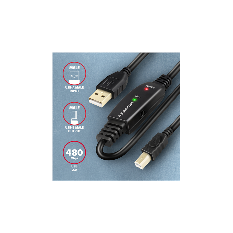 AXAGON USB repeater cable, 10 m | ADR-210B | USB Type A - USB Type B