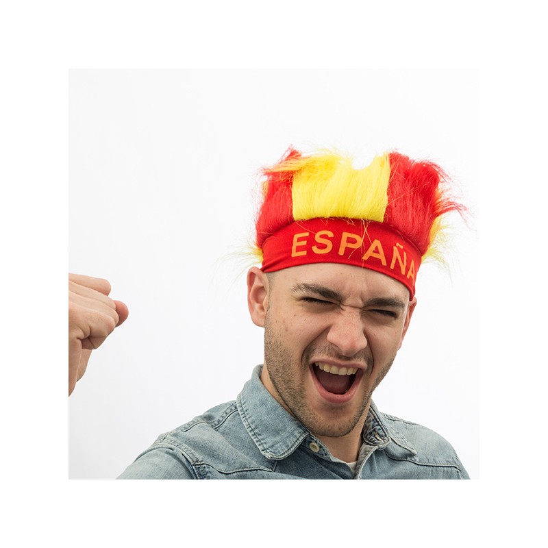 Ispanijos spalvų perukas. Palaikyk mylimą futbolo komandą pasipuošęs Ispanijos atributais. Matmenys: apie 23 x 13 cm. Sintetinis audinys.