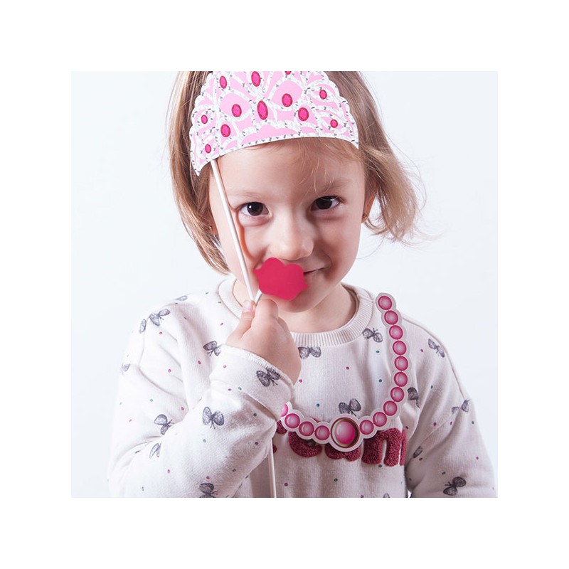 Mažoji jūsų namų princesė labai apsidžiaugs gavusi šį 12 modelių princesės aksesuarų rinkinį linksmoms nuotraukoms! Jame yra 12 kartoninių aksesuarų su plastikiniu pagaliuku laikymui. Apytikslis ilgis: nuo 20 iki 26 cm.