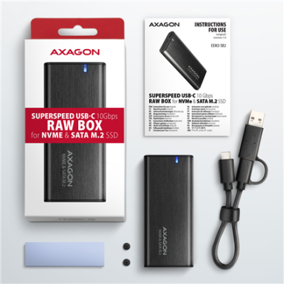 AXAGON External USB-C 3.2 Gen 2 metal box for M.2 NVMe & SATA SSD disks | EEM2-SB2