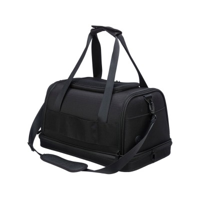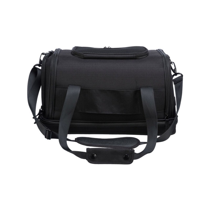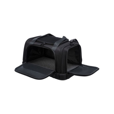 Transportieris Airline Plane no zīmola Trixie ir dzīvnieku soma, kas īpaši izstrādāta, lai nodrošinātu drošu un ērtu mazu dzīvnieku pārvadāšanu ceļojumu laikā, ideāli piemērota kā roka bagāža lidmašīnā, jo to pieņem lielākā daļa aviokompāniju. Tās konstrukcija apvieno augstas kvalitātes materiālus, piemēram, poliestera un cieto EVA gumiju, kas nodrošina ūdensizturīgu, polsterētu un noņemamu pamatni dzīvnieka ērtībai un aizsardzībai. Šim transportierim ir priekšējā, sānu un augšējā atvere, kas ļauj ērti un daudzveidīgi piekļūt dzīvniekam. Tam ir aprīkots ar ārējo kabatu, kurā var glabāt aksesuārus vai ceļošanai nepieciešamos dokumentus. Ērtākai lietošanai tam ir divas rokturu siksnas, integrēts īss siksniņa un noņemama plecu siksna, piedāvājot vairākas ergonomiskas pārvadāšanas iespējas. Turklāt to var piestiprināt pie ratiņiem, ļaujot viegli kombinēt ar citu bagāžu. Tā melnais dizains ir praktisks un neuzkrītošs, piemērots jebkuram ceļošanas stilam. Pateicoties visām šīm īpašībām, Trixie Airline Plane nodrošina funkcionālu un izturīgu risinājumu, kas atbilst dzīvnieku gaisa pārvadājumu noteikumiem, garantējot ērtību un drošību pārvietojoties.