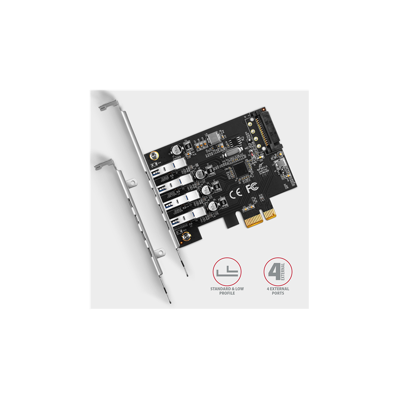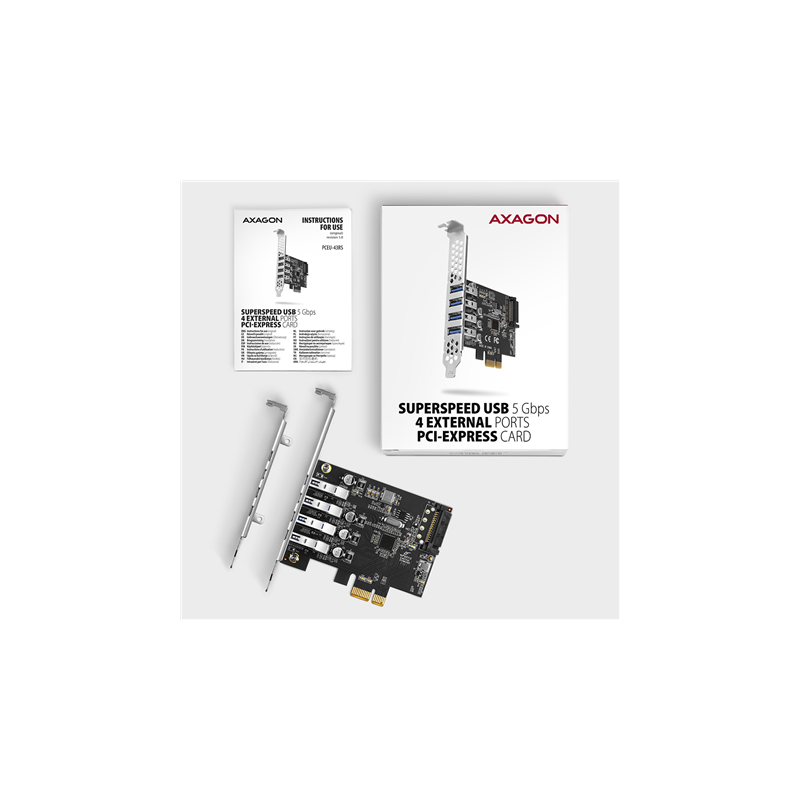 AXAGON PCI-Express card with four external USB 3.2 Gen1 ports with dual power | PCEU-43RS