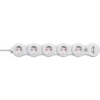 Strāvas virtene - 5 ligzdas ar Slēdzi Brennenstuhl Vario-Power Balts 3600 W USB x 2 (1,4 m)