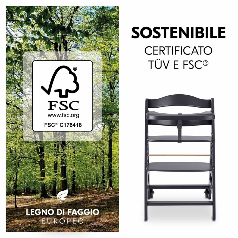 Hauck BETA+ regulējamais augšējais krēsliņš ir daudzfunkcionāls produkts, kas paredzēts bērna augšanas atbalstam no 6 mēnešiem līdz 90 kg, nodrošinot ilgstošu un pielāgotu risinājumu. Izgatavots no augstas kvalitātes FSC sertificēta koka, tas apvieno izturību un ilgtspējību, piedāvājot elegantu apdari tumši pelēkā un brūnā tonī, kas harmoniski iederas dažādās mājas vidēs. Ar aptuveniem izmēriem 58 cm šis krēsliņš ir regulējams, lai pielāgotos dažādiem vecumiem un izmēriem, nodrošinot ērtu un ilgstošu lietošanu. Tam ir 5 punktu drošības jostas, kas garantē maksimālu bērna drošību ēšanas laikā, sniedzot vecākiem mieru. Turklāt tam ir ritentiņi ērtai pārvietošanai mājās bez piepūles, palielinot produkta funkcionalitāti. Dizains ietver viegli tīrāmus materiālus, kas atvieglo ikdienas kopšanu un veicina higiēnu bērna tuvumā. BETA+ krēsliņš ir radīts, lai nodrošinātu ērtu un drošu sēdvietu, piedāvājot praktisku un izturīgu risinājumu bērna ēdināšanas un atpūtas vajadzībām pirmajos gados. Šis produkts atspoguļo Hauck zīmola kvalitātes, drošības un pielāgojamības apvienojumu bērnu risinājumos.