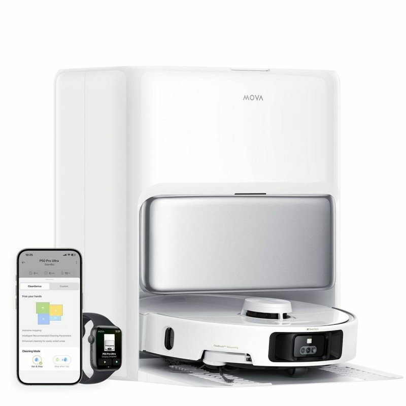 Dreame robotu putekļsūcējs P50 PRO ULTRA ir ierīce, kas paredzēta efektīvai un ērtai mājas uzkopšanai. Ar kompaktā dizaina un 35 cm diametra apaļu un riņķveida formu tā viegli piekļūst šaurām vietām un stūriem, pielāgojoties dažādām mājas vidēm. Tā baltais tonis piešķir neitrālu stilu, kas viegli iederas jebkurā telpā. Svars ir 4 kg, nodrošinot stabilitāti un manevrētspēju, nezaudējot pārnēsājamību. Starp galvenajām īpašībām šis modelis ir kluss, ļaujot to lietot bez traucējumiem ikdienā. Turklāt tas ir aprīkots ar tehnoloģiju šķēršļu noteikšanai, kas uzlabo autonomo navigāciju, novēršot sadursmes un aizķeršanās, garantējot nepārtrauktu un efektīvu tīrīšanu. Ierīces konstrukcija ļauj to vieglāk tīrīt, samazinot apkopi un pagarnojot kalpošanas laiku. Šīs īpašības padara Dreame P50 PRO ULTRA par efektīvu risinājumu tiem, kas vēlas automatizēt uzkopšanas darbus ar praktisku, klusu un tehnoloģiski attīstītu ierīci. Kopumā tā ir līdzsvarota alternatīva mājas tīrības uzturēšanai ērti un bez sarežģījumiem.
