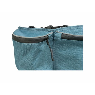 Trixie zīmola Baggy Belt jostas soma ir funkcionāls un daudzpusīgs aksesuārs mājdzīvnieku īpašniekiem, kas vēlas ērtību un kārtību pastaigu laikā. Izgatavota no izturīgas un vieglas poliestera un kokvilnas kombinācijas, šī jostas soma nodrošina ilgmūžību un patīkamu pieskārienu. Tai ir vairāki iekšējie un ārējie nodalījumi, kas ļauj glabāt un atdalīt dažādus priekšmetus, nodrošinot ātru piekļuvi svarīgākajām lietām. Galvenā soma ar izmēriem 24 × 11 × 6 cm piedāvā plašu vietu lielākiem priekšmetiem, papildināta ar sānu kabatām 10 × 11 × 6 cm, kas piemērotas papildinājumiem vai mazākiem aksesuāriem. Ir ūdensizturīga rāvējslēdzēja aizdare, kas aizsargā saturu no mitruma, nodrošinot lietu sausumu jebkuros apstākļos. Praktiska ātras piekļuves sānu kabata ir piemērota uzkodām vai priekšmetiem, kas jābūt rokas stiepiena attālumā. Lai palielinātu funkcionalitāti pastaigas laikā, soma ir aprīkota ar karabīni, kas ļauj viegli piespraust svilpi, klikeri vai citus nepieciešamos aksesuārus. Īpaši noderīgs ir integrēts atkritumu maisiņu dozators, kas atvieglo higiēnisku suņu atkritumu savākšanu bez papildu piederumu nepieciešamības. Papildus tam somai ir atstarojoši elementi, kas uzlabo redzamību un drošību vājā apgaismojumā vai naktīs. Šī jostas soma apvieno praktiskumu un dizainu, paredzēta lietotājiem, kuri novērtē kārtību un ērtības ikdienas pastaigās ar mājdzīvniekiem.