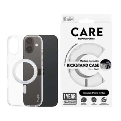 CARE by PanzerGlass Case Feature | Back protection | Apple | iPhone 16 Plus | Recycled plastic | Silver | Kickstand & MagSafe