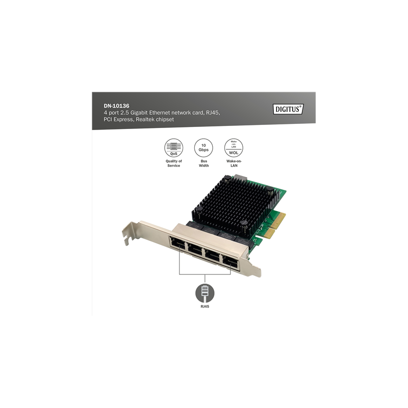 Digitus DN-10136 4-Port RJ45 RTL8125B, 2.5 GBits Server NIC