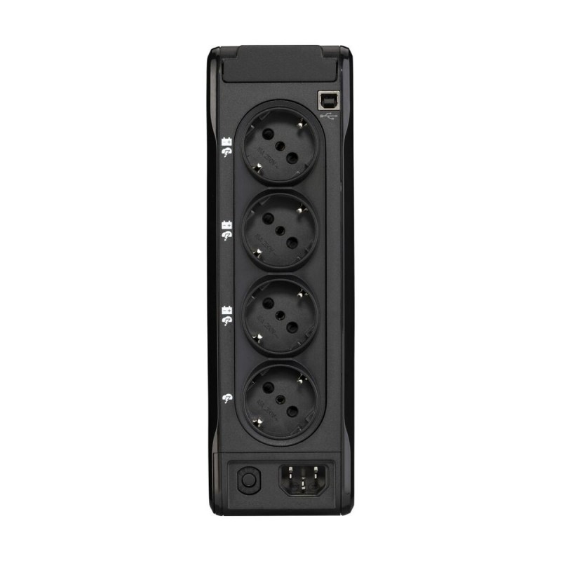 Eaton 3P ELLIPSE 900 USB DIN ir interaktīvs SAI, kas paredzēts elektronikas aizsardzībai pret strāvas pārtraukumiem un svārstībām. Tam ir 540 W izejas jauda un 0,9 kVA kapacitāte, kompakts torņa formāta korpuss melnā krāsā no izturīga ABS, piemērots gan profesionālai, gan mājas lietošanai ierobežotā telpā. Standby topoloģijas sistēma, kas raksturīga offline SAI, nodrošina ātru barošanas atjaunošanu pēc pārtraukuma, aizsargājot ierīces, pievienotas caur 4 AC izejas ligzdām ar C14 savienotāju. Ierīcei ir LED indikators vizuālai uzraudzībai un USB A un USB-C porti, kas ļauj savienot ar datoru, lai pārraudzītu statusu un vadītu ierīci ar programmatūru. Iebūvētā baterija ir 9 Ah, 12 V, nodrošinot pietiekamu autonomiju, lai novērstu negaidītu izslēgšanos. Starp papildu funkcijām ir uzstādīšanas rokasgrāmata un pārslogošanas indikators, kas uzlabo drošību un lietošanas ērtumu. Modelim ir starptautiski atzīti sertifikāti CB, CE, RoHS un WEEE, kas garantē kvalitātes un vides prasību ievērošanu. Torņa dizains ļauj viegli integrēt ierīci darba vietā, bet LED tehnoloģija nodrošina skaidru un saprotamu saskarni. Kopumā Eaton 3P ELLIPSE 900 USB DIN apvieno izturību, pamata elektriskās aizsardzības funkcijas un USB saderību, piedāvājot uzticamu un viegli pārvaldāmu nepārtrauktās barošanas risinājumu.