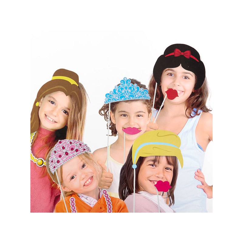 Маленьким принцессам придутся по душе принадлежности для забавных фото Princesa (комплект из 12 штук)! Входит 12 аксессуаров из картона с пластиковым стержнем для крепления (приблизительная длина: от 20 до 26 см).