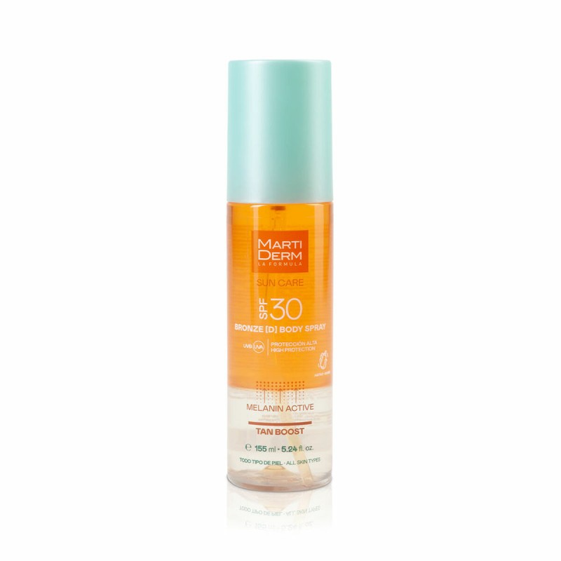 SUN CARE от Martiderm — это пролонгатор загара, разработанный для эффективной защиты от солнца и продления золотистого оттенка кожи. Выпускается в формате спрея 50 мл, подходит для мужчин и женщин, для всех типов кожи. Содержит солнцезащитный фильтр SPF 30, который помогает защищать кожу от повреждений, вызванных УФ-излучением, предотвращая преждевременное старение и обеспечивая безопасность при каждом использовании. В составе присутствуют дермокосметические компоненты, такие как пропандиол, известный своими увлажняющими и смягчающими свойствами, поддерживающими эластичность и увлажненность кожи после пребывания на солнце. Производится в Испании и относится к категории дермокосметики из парафармации, что гарантирует высокие стандарты качества и эффективности ухода за кожей. Легкая текстура спрея обеспечивает равномерное нанесение, быстро впитывается и не оставляет жирных следов. Этот продукт идеально подходит тем, кто хочет эффективно защитить кожу и продлить интенсивность и сияние загара, обеспечивая при этом комфортное ощущение и возможность ежедневного применения. Профессиональная упаковка подчеркивает его статус незаменимого средства для ухода за кожей и поддержания здорового, стойкого загара.