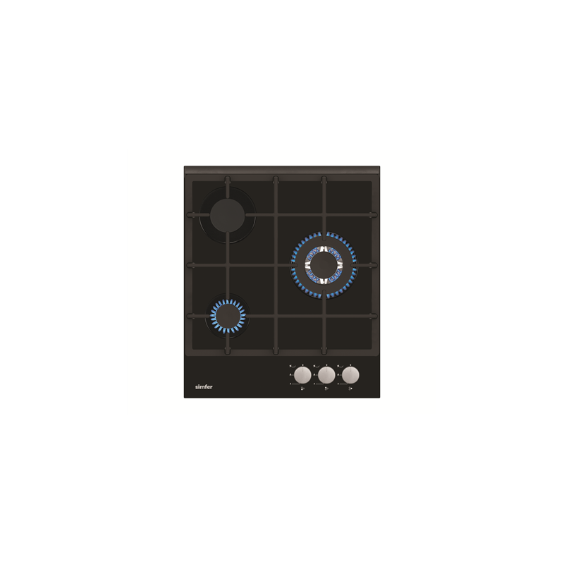 Simfer | Hob | H4.305.HGSSP | Gas on glass | Number of burners/cooking zones 3 | Rotary knobs | Black