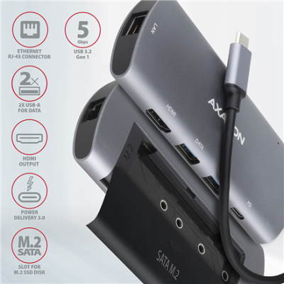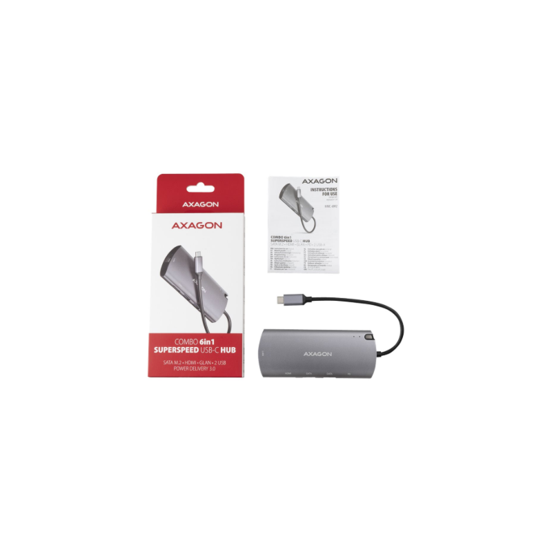 AXAGON SuperSpeed USB-C Combo 6in1 Hub | HMC-6M2