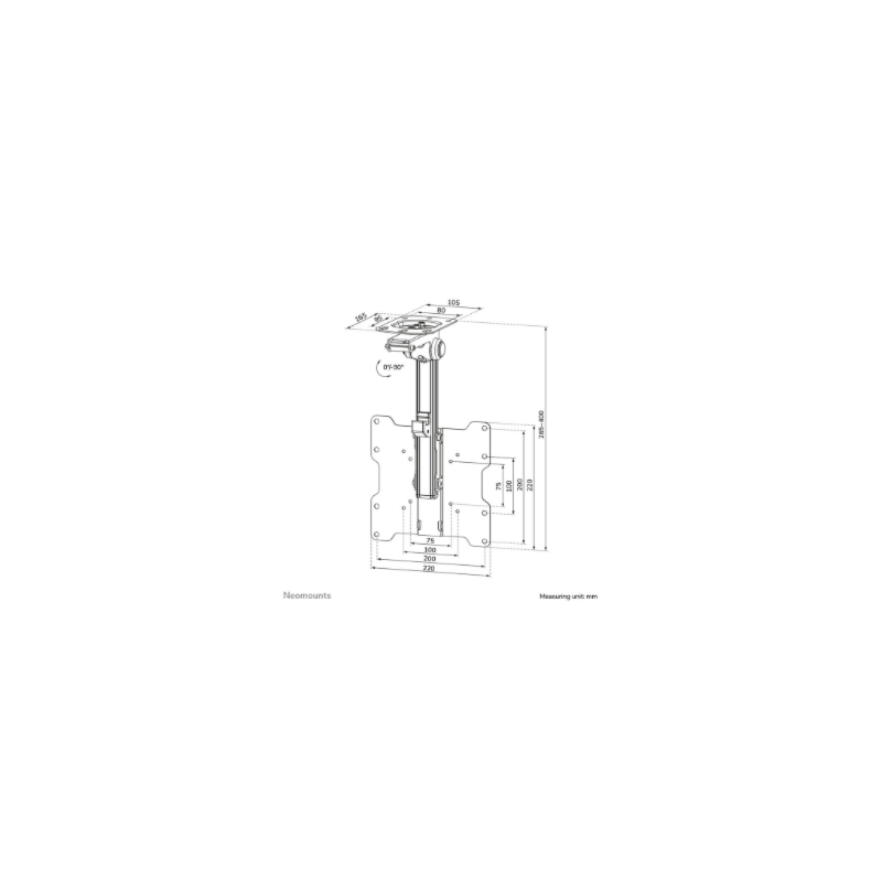 Neomounts FPMA-C020BLACK Monitor/TV Mount Ceiling | Adjustable Height, Tilt | 10-40 " | Maximum weight (capacity) 20 kg | Black