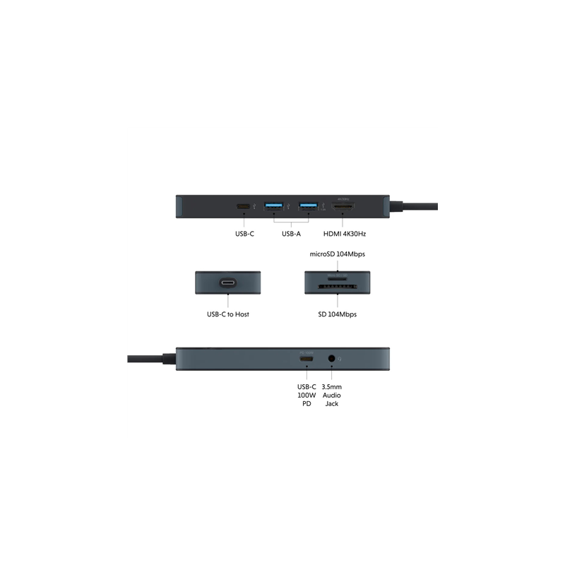 Hyper HyperDrive Flex 8 Port USB-C Hub, Black | HD4102BKGL | HDMI ports quantity 1