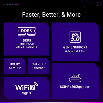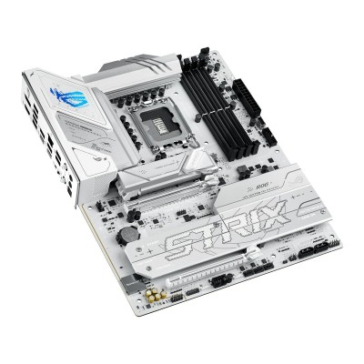 Материнская плата Asus ROG STRIX B860-A GAMING WIFI является ключевым компонентом для высокопроизводительных игровых систем и требовательных задач. Основана на чипсете Intel B860, который обеспечивает современную и стабильную платформу для процессоров с сокетом LGA 1851 (Socket V1), совместимую с последними поколениями процессоров Intel. Форм-фактор ATX предоставляет достаточно места для установки множества компонентов и систем охлаждения, что идеально подходит для кастомных сборок и расширений. Эта плата выделяется продвинутой связью, включая порты USB и USB-C для быстрой и универсальной передачи данных и подключения внешних устройств, а также встроенный Bluetooth и Wi-Fi, обеспечивающие стабильное беспроводное соединение и уменьшающие зависимость от кабелей в современных конфигурациях. Гарантирована совместимость как с ПК-платформами, так и с операционной системой Windows 11, что обеспечивает обновленную и оптимизированную среду для повседневного и профессионального использования. Белое оформление придаёт чистый и современный вид, который отлично смотрится в корпусах с окном, подчёркивая стиль и функциональность. Благодаря возможностям чипсета Intel B860 и прочной архитектуре, эта материнская плата представляет собой сбалансированное решение, максимизирующее эффективность, связь и гибкость для пользователей, желающих собрать или обновить систему с качественными и современными компонентами. В целом, Asus ROG STRIX B860-A GAMING WIFI выступает надёжной основой для мультимедийных систем, игр и требовательных приложений, предлагая стабильность и универсальность в формате, совместимом с последними тенденциями аппаратного обеспечения.