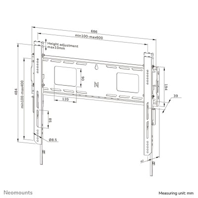 Neomounts WL30-750BL16 — это фиксированный настенный кронштейн для телевизора, разработанный для больших и интерактивных экранов, совместимый с диагоналями от 42" до 86" и максимальной грузоподъемностью 125 кг. Этот прочный кронштейн обеспечивает надежное и точное крепление тяжелых экранов благодаря высокопрофильной настенной пластине, которая гарантирует стабильность даже на неровных поверхностях. Конструкция включает регулируемые по глубине крепления в нижней части для оптимального распределения веса и максимальной прочности. Кроме того, имеются индивидуально регулируемые по высоте рычаги с ходом до 10 мм, позволяющие точно выровнять экран или установить его в нужное положение. Профиль ультратонкий — расстояние от стены всего 4,2 см, что придает установке аккуратный и элегантный вид. Кронштейн соответствует стандарту VESA от 100x100 до 600x400 мм, подходя для большинства профессиональных и крупноформатных экранов. Для удобства управления кабелями предусмотрена продуманная функция скользящего механизма, обеспечивающая легкий доступ к разъемам и портам, а также различные вырезы и отверстия для крепления и аккуратной организации кабелей и устройств, что способствует чистой и профессиональной установке. Система быстрого монтажа с помощью соединительной пластины облегчает установку и безопасное снятие экрана, включая механизм фиксации и освобождения для удобства и безопасности. Для дополнительной защиты предусмотрена возможность установки замка (не входит в комплект) для предотвращения несанкционированного доступа. В качестве опции можно подключить боковой AV-кронштейн для хранения или крепления дополнительных устройств. Neomounts WL30-750BL16 LEVEL сочетает продвинутую функциональность, высокую грузоподъемность и продуманный дизайн, обеспечивая стабильную, безопасную и профессиональную работу с сенсорными экранами, идеально подходя для сред, где важны надежность и точность при установке больших и тяжелых дисплеев.