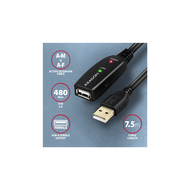 AXAGON Active extension cable, 7.5 m | ADR-207 | USB Type-A to USB Type-A