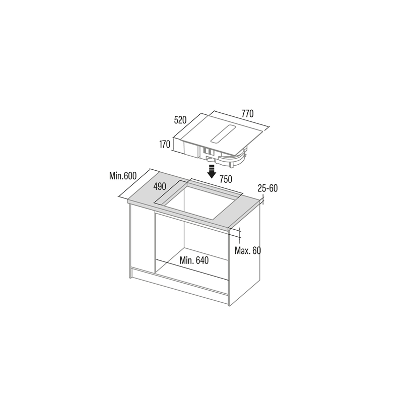 CATA | Hob with Hood | IAS 7024 | Induction | 77 cm | Number of burners/cooking zones 4 | Black | Slider